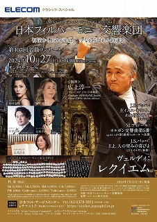 指揮:広上淳一[フレンド・オブ・JPO(芸術顧問)] ソプラノ:中村恵理 メゾソプラノ:福原寿美枝 テノール:宮里直樹 バリトン:高橋宏典 オルガン:長井浩美 合唱:日本フィルハーモニー協会合唱団