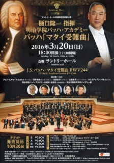 ■日時:2016年3月13日(日) 14:00開演 (13::20開場) ■会場:横浜みなとみらいホール 大ホール 出演: 指揮:青木洋也 ソプラノ:藤崎美苗 アルト:布施奈緒子 テノール:北村敏則(福音史家) バス:小玉 晃(イエス) バス:藤井大輔(ピラト) 管弦楽:東京フィルハーモニー交響楽団 合唱:合唱団ノヴァ ヴォーチェ 曲目: J.S.BACH「マタイ受難曲」 ~メンデルスゾーン版~ (字幕付上演) チケット: S:4,500円 A:3,500円 B:2,500 円【全席指定】 お問合せ: 合唱団事務局(加藤) 090-3040-0339 合唱団NOVA VOCEのホームページ