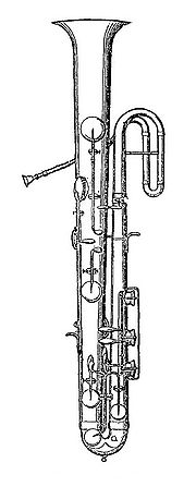 1843年のゾンマーのゾンメロフォンが登場する以前は、セルパン※1やバスホルン、オフィクレイド※2などが金管低音の役割を担っていました。1835年に、C.モリッツによってF管のピストン式バステューバが作られ、続いて1837年にはそれよりも管の短いB♭管のピストン式テノールテューバが作られたことにより、以後、B♭管のピストン式テノールテューバがユーフォニアムへと発展し、F管のピストン式バステューバはバスそしてコントラバステューバへと発展し、金管の低音域をテナーとバスという別々の楽器で演奏するようになりました。