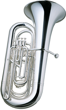 一般的にテューバというとこのコントラバス・テューバを指します。テューバ属のうち管の長さがいちばん長い変ロ調(B♭管)とハ調(C管)の楽器がこれにあたります。大きさもバス・テューバよりさらに一回り大きく、音量も最低音で豊かです。ただ大きいぶん機動力は劣ります。
